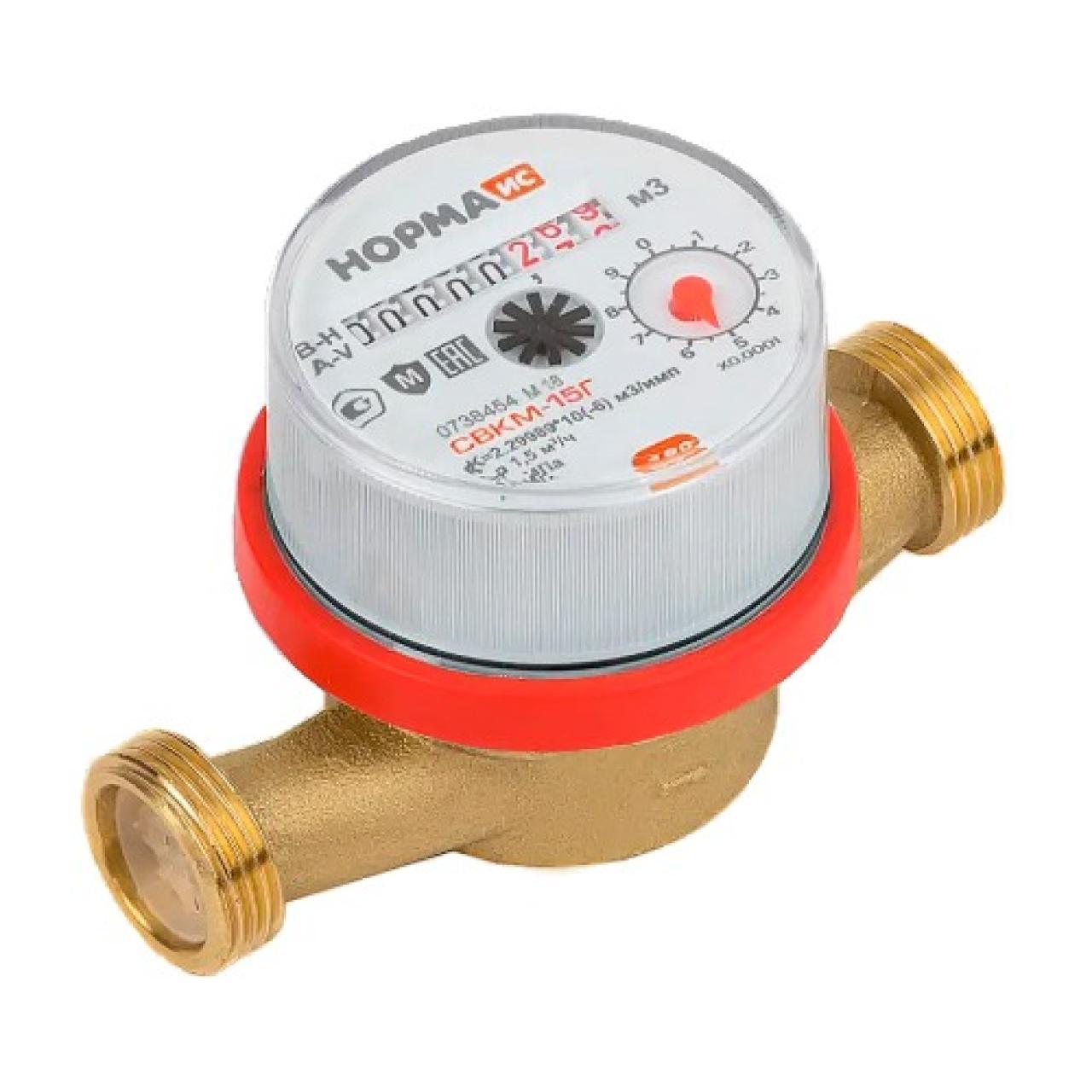 Счетчик воды горячей (Норма) СВКМ-15 предназначен для измерения объема горячей воды, протекающей по трубопроводу. Счетчик допускает работу в диапазоне температур от +5 до +95 °С, давлением до 1,6 МПа. Преимуществом данного устройства является возможность монтажа как на вертикальных трубах, так и на горизонтальных. Латунный корпус изделия надежно защищен от деформации и повреждений покрытием из никеля. Счетчик обладает защитой от магнитного воздействия, что исключает погрешности в измерениях.